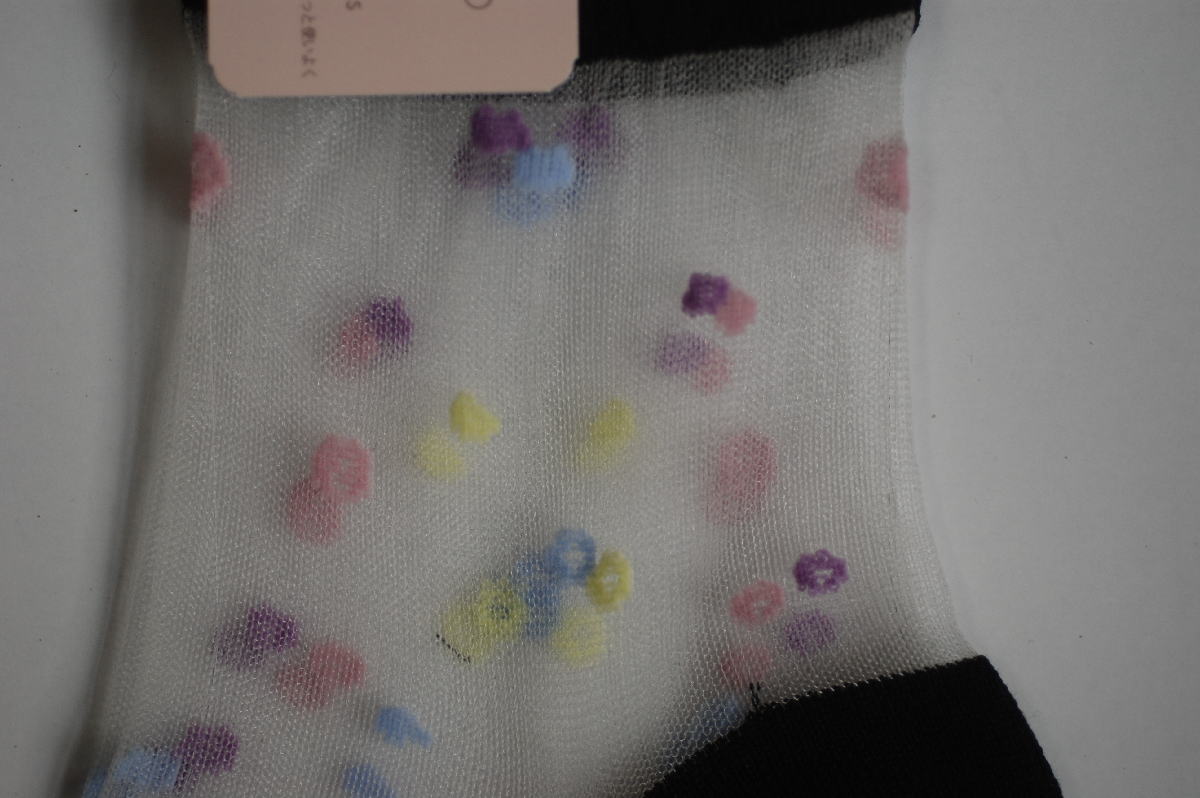 日本製婦人靴下「ひんやり快適、サラッと爽やか」キシリトール加工、花/ブラックオールシーズン【送料無料】
