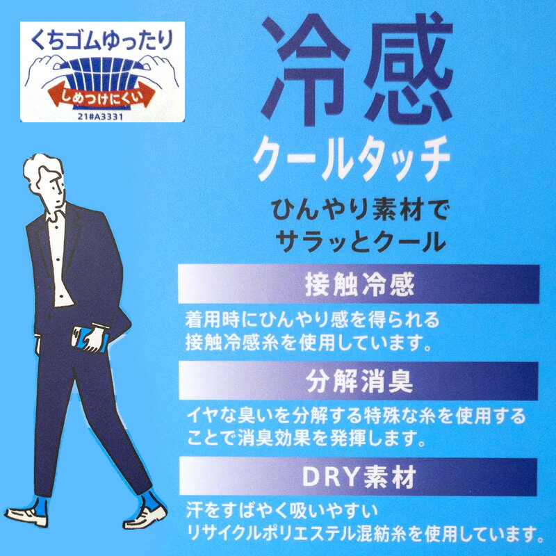 福助 満足 紳士5本指ソックス 冷感クールタッチ 24-25cm〜26-27cm (メンズ 紳士用 靴下 ソックス ビジネス デイリー 消臭加工)