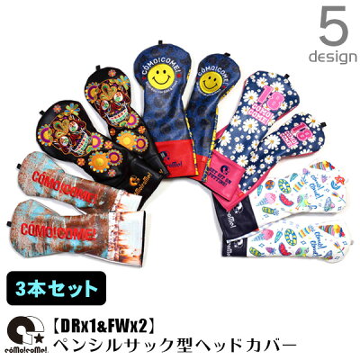 3本セット ゴルフ ヘッドカバー ドライバー フェアウェイウッド ペンシルサック エイジング ダメージ 錆 サイケスカル ドクロ ラブピ ニコちゃん スマイル マーガレット 花柄 サマー 夏 カラフル刺繍 かわいい カワイイ 可愛い おしゃれ オシャレ お洒落 デザイン お買い得